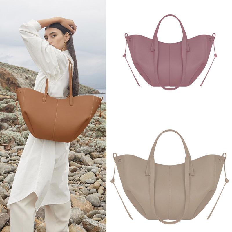 Genuine Polene Women's Large Cowhide Tote with Pleated Design – Shoulder and Underarm Fashion Bag.