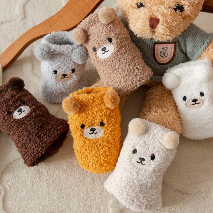 Japanese Coral Fleece Bear Cartoon Mid-Calf Socks - Autumn/Winter, Non-Shedding Sleep Socks
