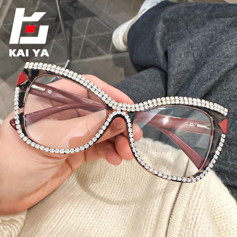 Large Frame Cat-Eye Anti-Blue Light Reading Glasses with Handmade Diamond Decoration