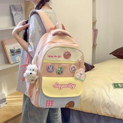 School Bag 2025 New Ins Cute College Style Versatile High Value Large Capacity Multi-compartment School Bag Sweet Backpack
