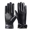 Warm Gloves Women's Leather Gloves New Bow Outdoor Riding Fleece Cold-proof Touch Screen Autumn and Winter Gloves
