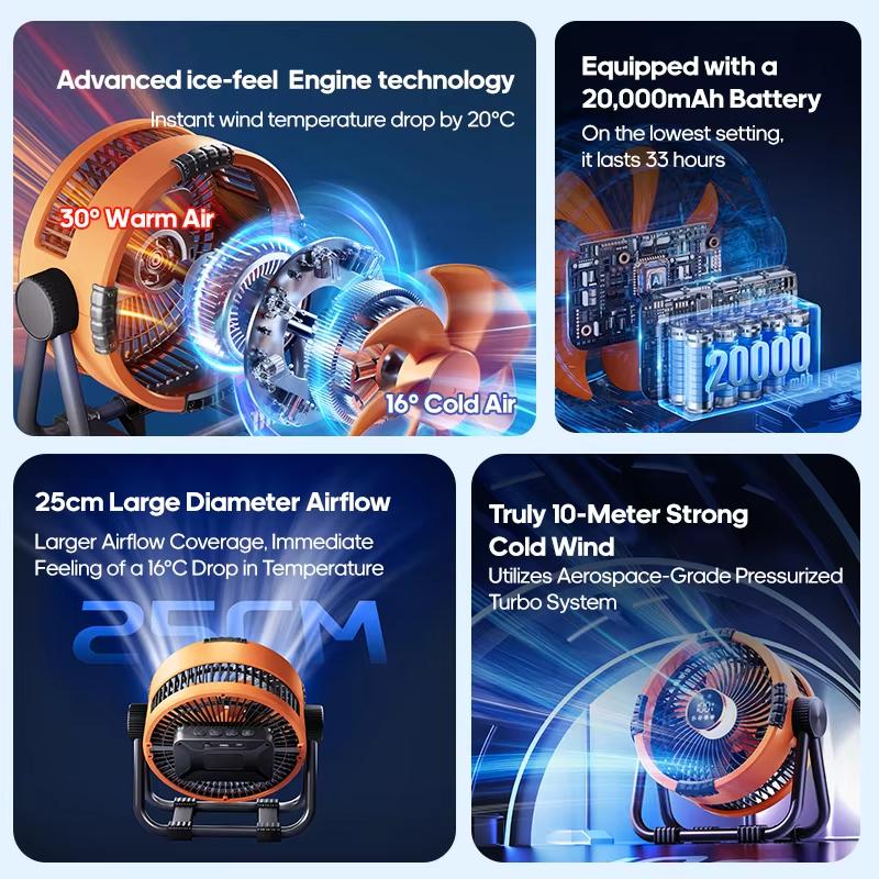 Multifunctional Outdoor Camping Fan Lighting Rechargeable Ceiling Fan with 3-speed Night Lights and Large Capacity Portable Fan