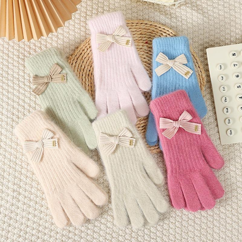 Wind Bow Knitted Gloves Women's Winter Outdoor Cold Protection and Warm Wrist Guards Can Be Cute and Sweet