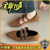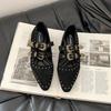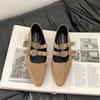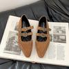 Retro Pointed One-word Buckle Mary Jane Shoes Autumn Fashion French Design Sense Rivet Wedge Single Shoes Women's Shoes
