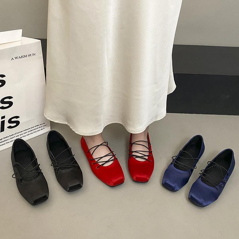 Blue Satin French Retro Square Head Cross Strap Mary Jane Shoes 2025 Summer New Flat Bottom Light Mouth Single Shoes Women