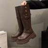 Two Wear Platform Knight Boots Women's 2025 Autumn and Winter New Brown But Knee Boots Thick Heel Thin Folded Martin Boots