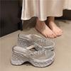 Silver Waterproof Platform Thick-bottomed High-heeled Wedge Slippers Women's 2025 New Summer Outer Wear Rhinestone Sequined Flip-flops