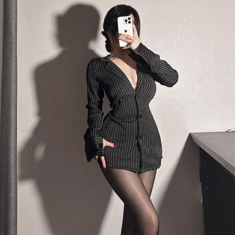 Sex Underwear, Professional Striped Shirt, Female Abstinence Secretary General Style, Black Pure Desire, Waist and High-end Women