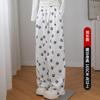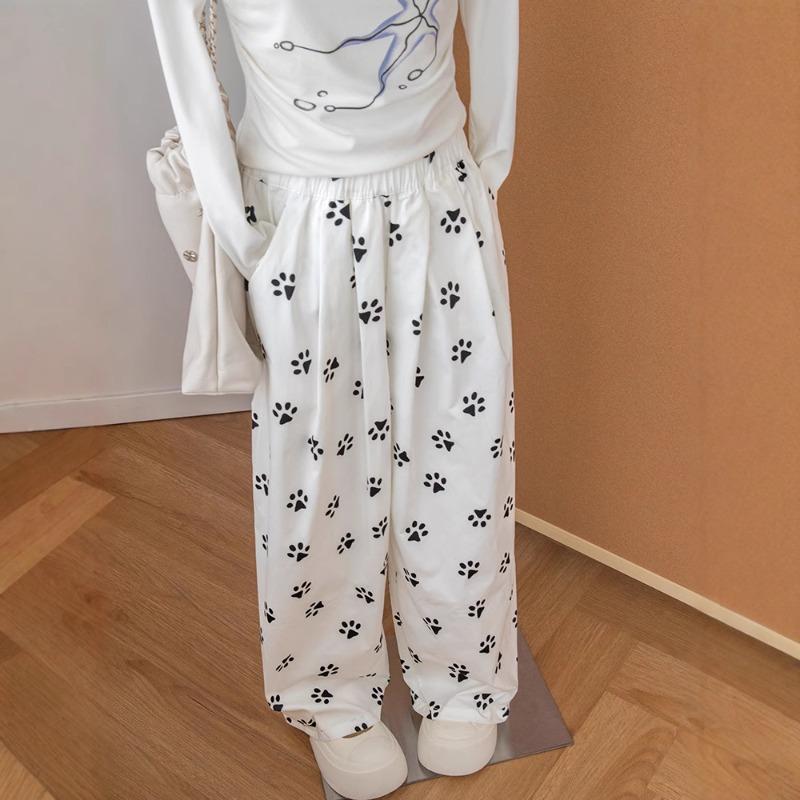 White Dog Paw Printed Milk Fu Wide-leg Pants Women's Summer Thin New Small Drape Ice Silk Yamamoto Pants
