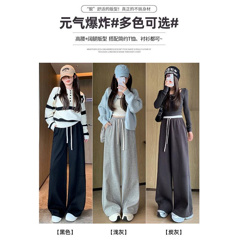 Wide Leg Pants Women's Spring and Autumn New High Waist Drape Loose Casual Straight Sweatpants Gray Banana Pants
