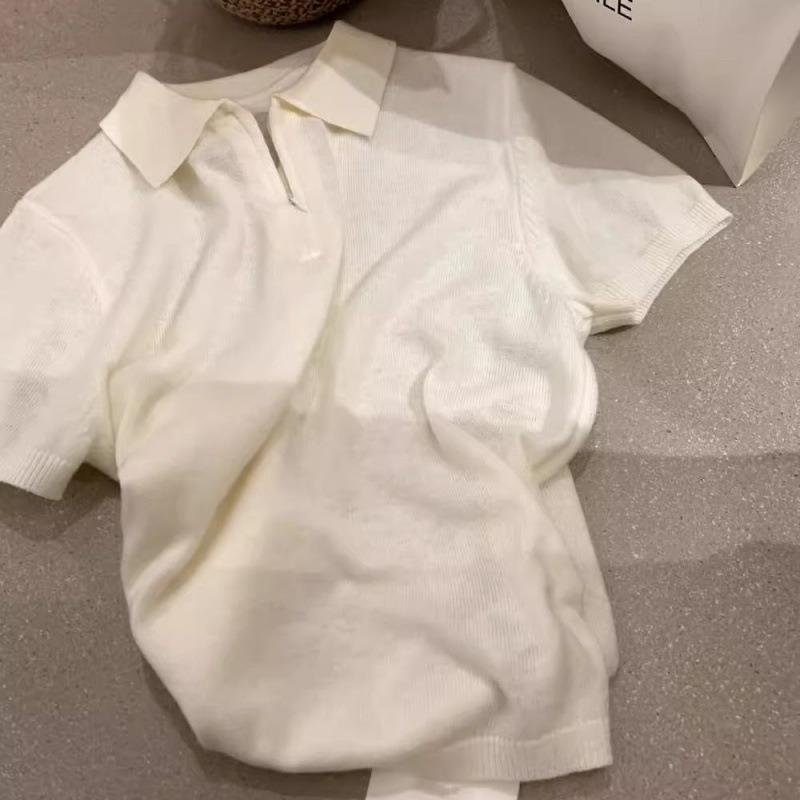 Solid Color Knitted Sweater Short-sleeved Women, Summer New Small Short Zipper Lapel Top Thin