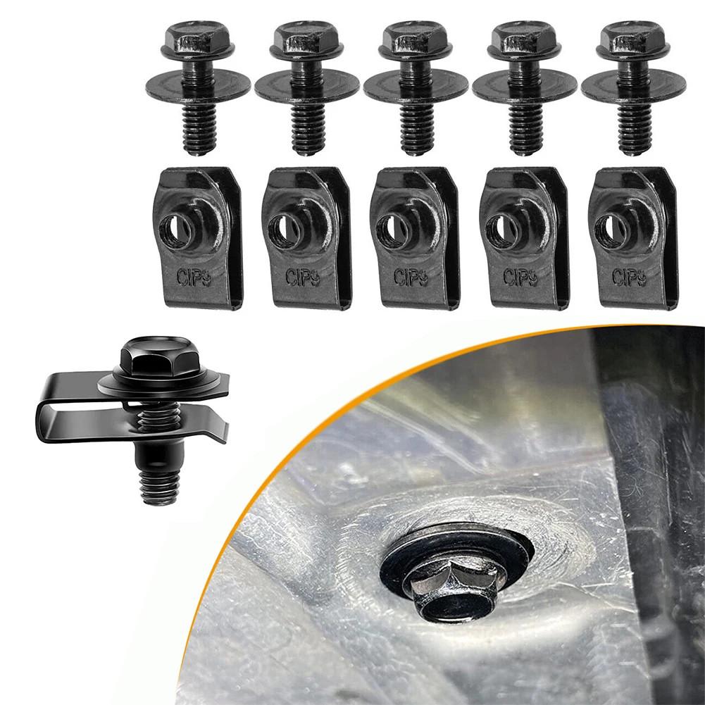 10Pcs Car Body Bolts U-nut Clips M6 Screws Engine Cover Undertray Splash Shield Guard Bumper Fender Liner Retainer Fastener Rivet Car Accessories