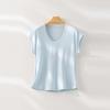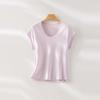Macaron Color Clavicle Collar Short-sleeved Shirt with Bottoming Shirt Inside Women's Summer Thin Casual and Thin Knitted Sweater