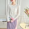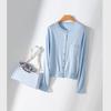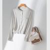 Ultra-fine Merino Cotton Wool Blended Knitted Cardigan Women's Round Neck Basic Long-sleeved Versatile Loose and Thin Top