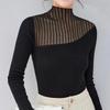 Semi-turtleneck Lace Mesh Splicing Bottoming Shirt Women's Autumn New Slim-fitting Inner Micro-transparent Silk Wool Knitted Sweater