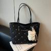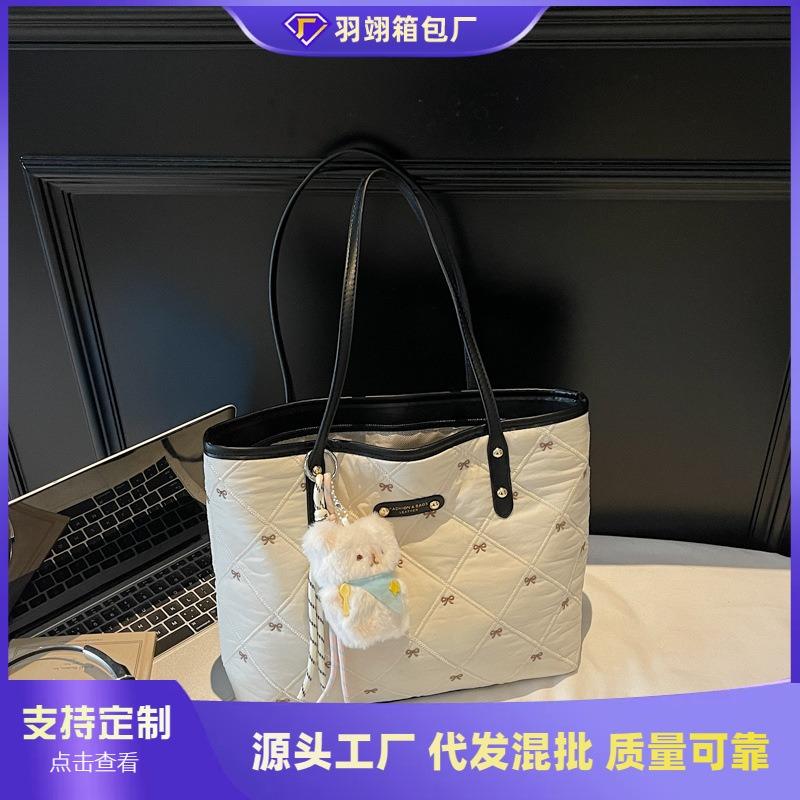 Bow Cotton Clothes Bag Large Capacity Women's Small Fresh Shoulder Bag Portable Embroidery Commuter Tote Bag New