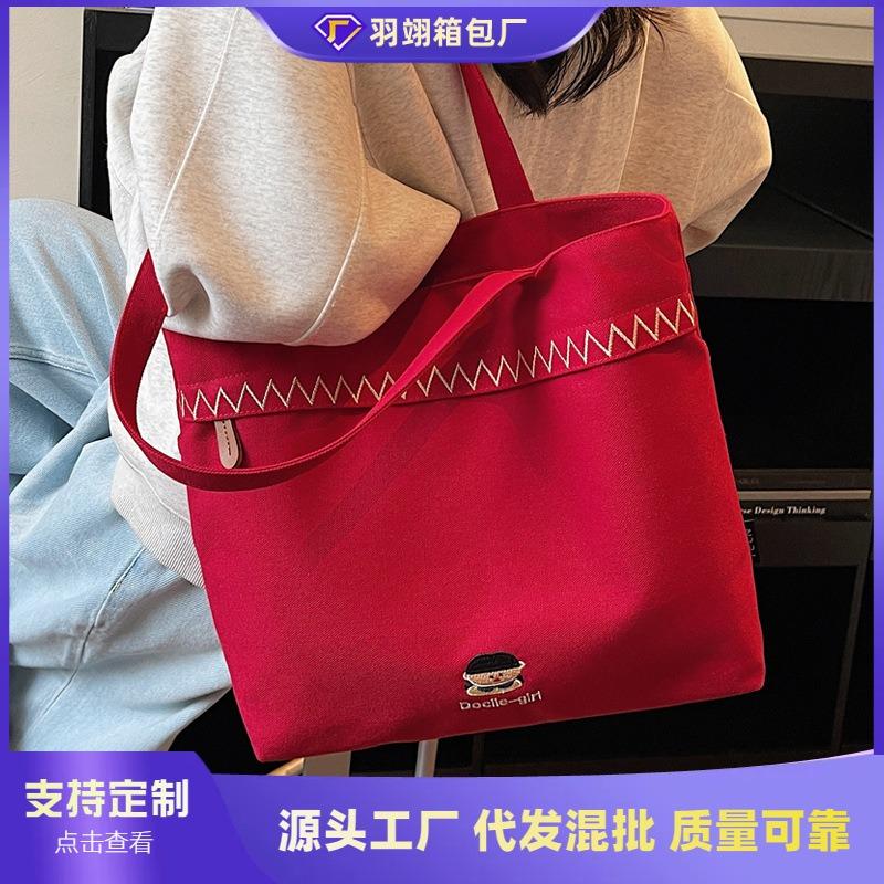 Casual Canvas Bag Women's New Fashion Tote Bag Student Class Versatile Shoulder Bag