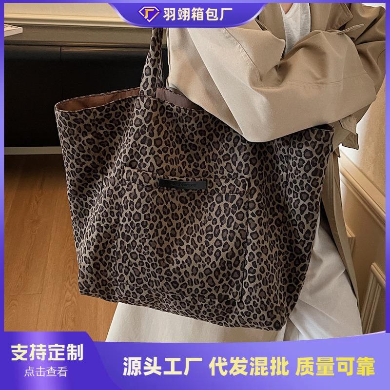 Leopard Print Cloth Bag Women's Large-capacity New Autumn and Winter Versatile Shoulder Bag Leisure Commuting Class Tote Bag