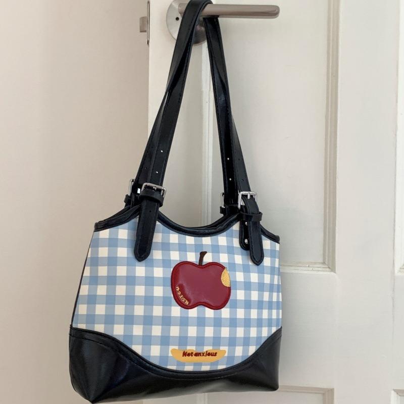 Underarm Bag Women's New Trendy Fashion College Style Plaid Apple Tote Bag Large Capacity Bag