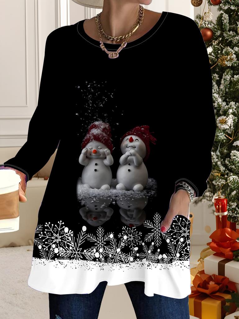 2025 Autumn Winter New Plus Size Women's Tops, Christmas 3D Print Fashion Crew Neck Long Sleeve T-Shirts