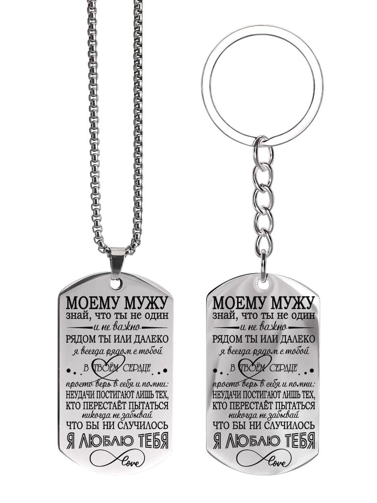 Stainless Steel Keyring and Necklace, Gift for Husband, Carved Badge, Ideal Gift for Men, Couples, Boyfriend, Family & Friends