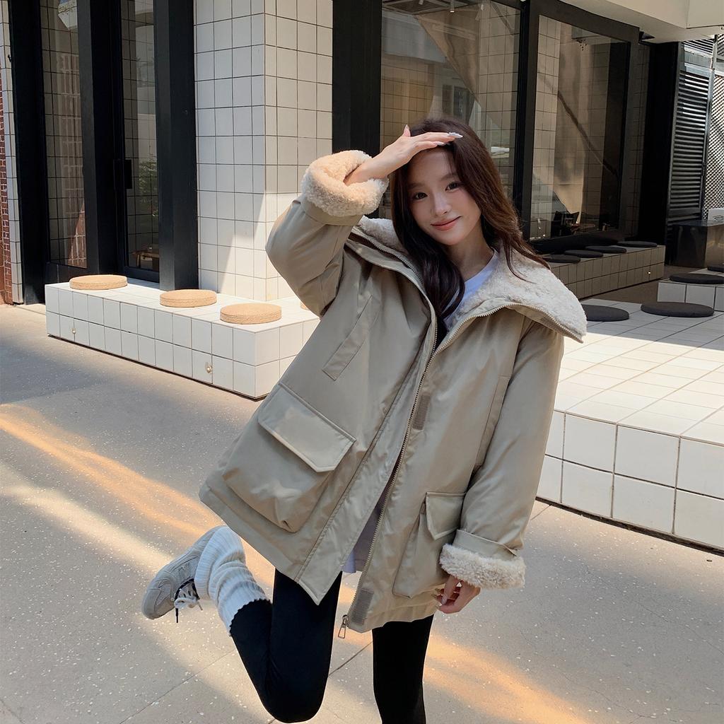 Large Laps Fur-Lined Thickened Workwear Parkas Women's Jacket