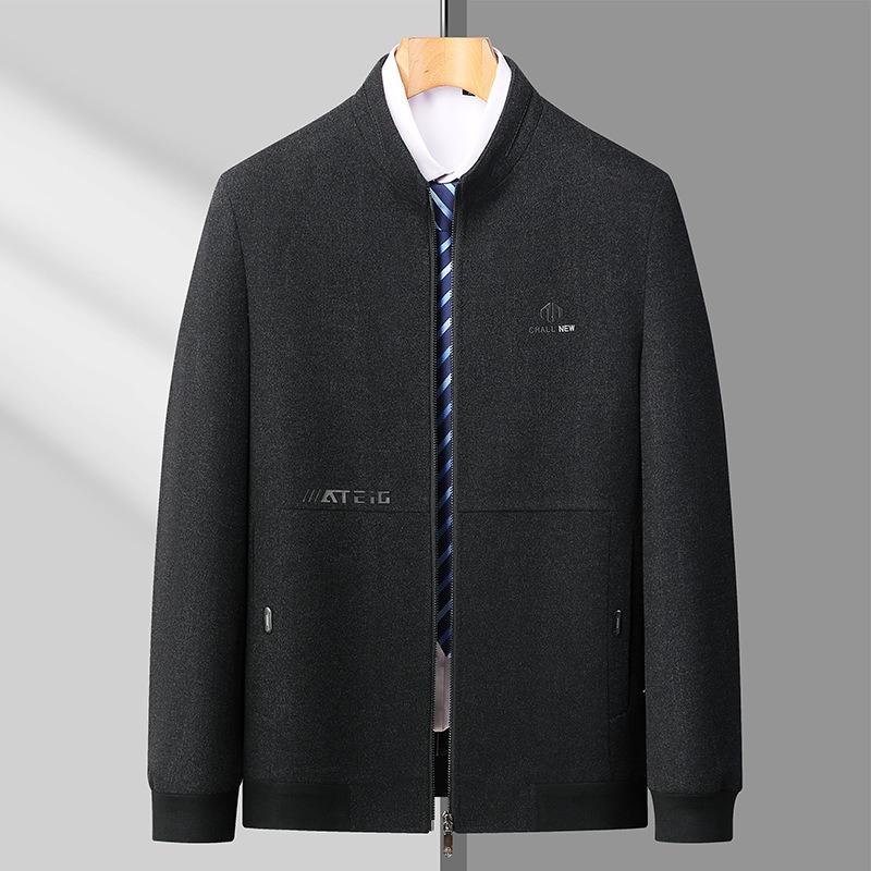 Men's Stand-up Collar Jacket Autumn and Winter New Medium and Light Business Jacket Solid Color Dad Executive Jacket Men's Casual