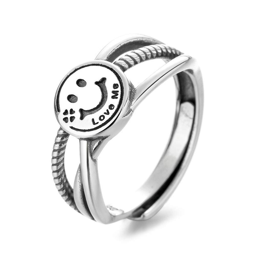 Rockyu One Size Fits Sterling Silver English Smiling Sterling Silver Wedding Engagement Stylish Gift Ring, All, 925, Engraved, Smile, Ring, Band,