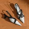 59007 High Heels Women's Thick Heel Summer 2025 New Rear Empty Sandals Pointed French Color Matching Medium Heel Single Shoes