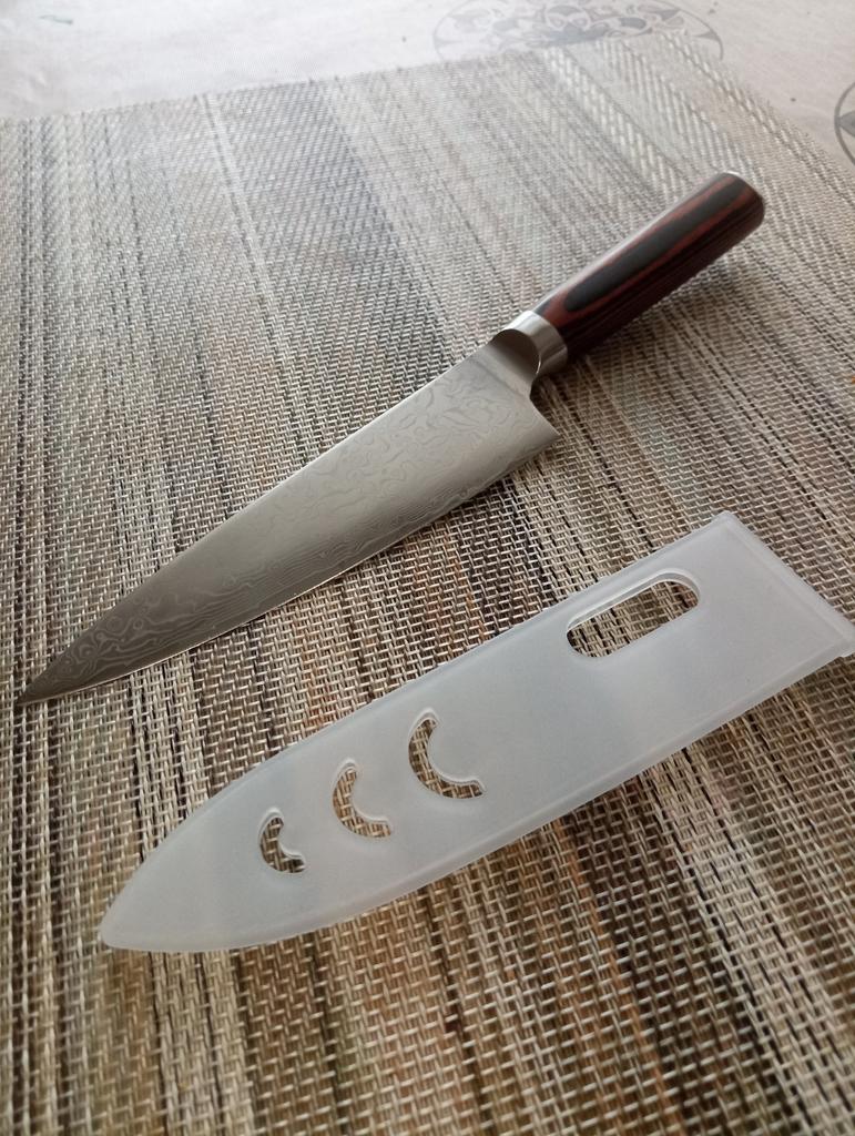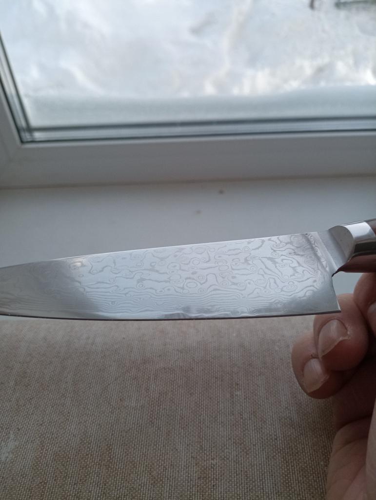 The knife is not bad. The sharpening is excellent, very sharp. The handle doesn't fit my hand, it's a bit short. But my wife approved!