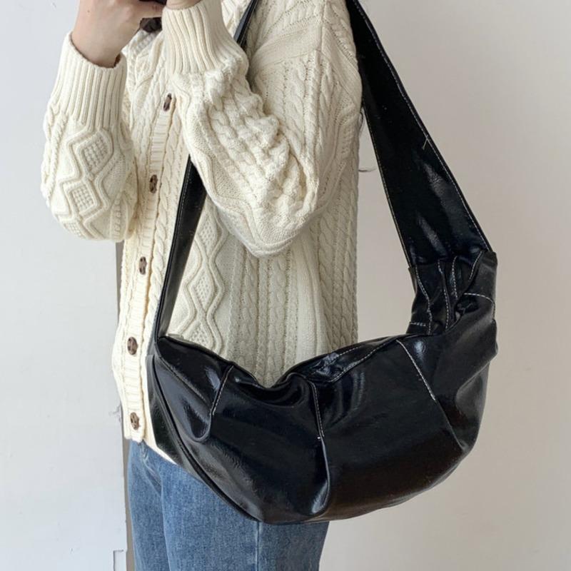 New Large-capacity Retro Shoulder Messenger Bag Soft Leather Pleated Dumpling Bag Lazy Wind Casual Bag