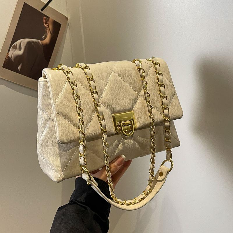 Chain Underarm Women's Bag, New Autumn Simple and Fashionable Diamond Square Bag, Solid Color Single Bag.