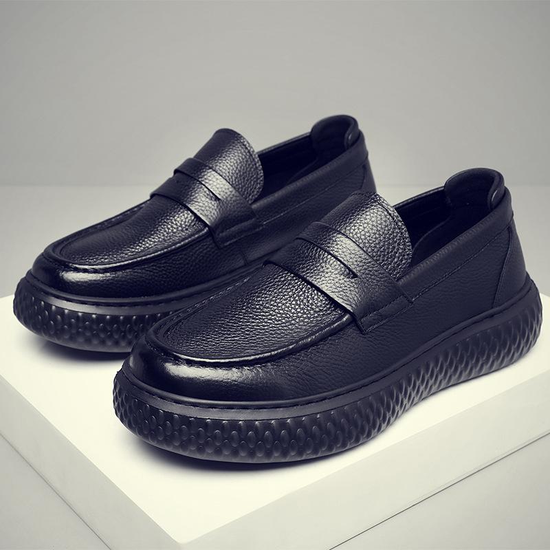 Men's Shoes First Layer Cowhide Men's One-pedal Loafers Comfortable Versatile Platform Casual Leather Shoes 2025 Autumn New