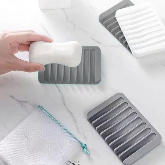 Self Draining Soap Dish Silicone Soap Tray Waterfall Drainer Soap Holder for Bathroom Shower Bath Tub Kitchen Sink