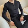 Spring Autumn Men's Slim Fit T-Shirts Solid Color V-Neck Cotton Long Sleeve Tshirt Men Korean Style Fashion Breathable Tees Tops