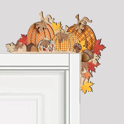 Autumn Pumpkin Door Corner Decoration Maple Pinecone Pumpkin Wooden Door Frame Sign Harvest Festival Front Door Edge Topper Sitter Ornament