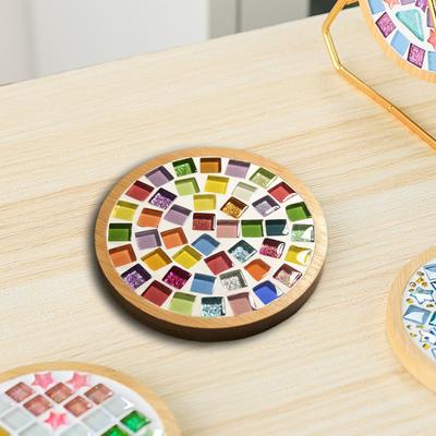 DIY Glass Mosaic Tile Coaster Set Mixed Color Mosaic Kit with Wooden Coaster Kids Adults Handmade Mosaic Crafts Coaster with Accessories