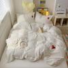 3pcs Black White Duvet Cover Set (1*Duvet Cover + 2*Pillowcase, Without Core),Red Heart Embroidery Bedding Set, Soft Comfortable