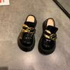 Fashion 2025 Patent Leather Mules Metal Chain Pearl Bowknot Women Slippers Creepers Sandals Platform Shoes Thick Soled Cover Toe Slides