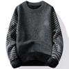 Men's Sweater Patckwork Round Neck Pullovers Fleece Lined Thick Warm Winter Knitwear Fashion Jumpers Men's Clothes