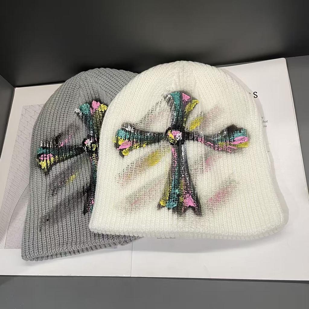 Dongdaemun Autumn and Winter New American Retro Cross Knitted Hat Women's Face Showing Small Woolen Hat
