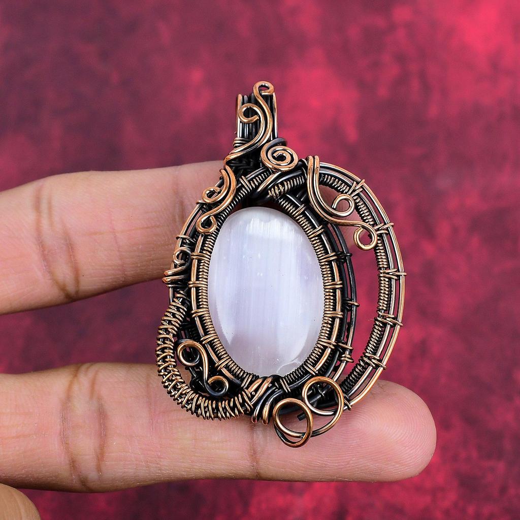 Selenite Pendant Copper Wire Wrapped Pendant Handmade Natural Gemstone Pendant Copper Jewelry Gift for Mom Designer Pendant Selenite Jewelry