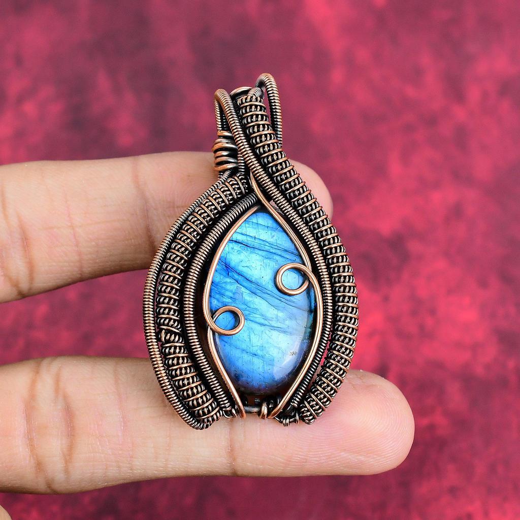 Labradorite Pendant Copper Wire Wrapped Pendant Natural Gemstone Pendant Copper Wire Jewelry Gifts for Mother Handmade Unique Style Pendant