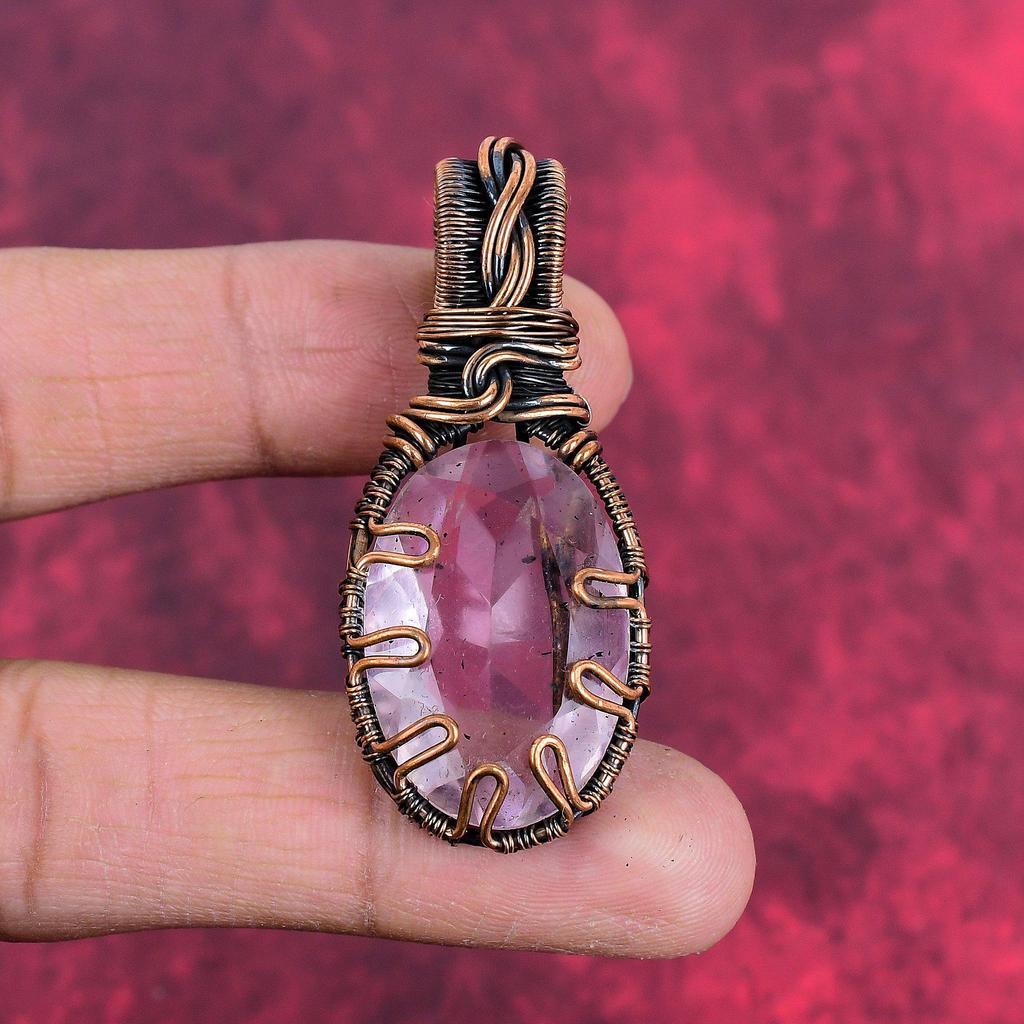 Faceted Pink Kunzite Pendant Copper Wire Wrapped Gemstone Pendant Handmade Jewelry Brand New Pendant Gifts for Mom Beautiful Copper Jewelry