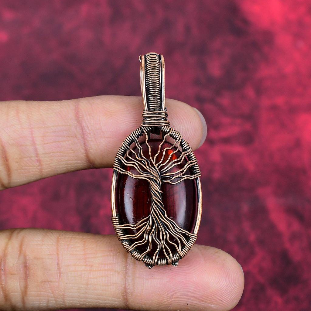 Tree of Life Red Fire Labradorite Pendant Copper Wire Wrapped Pendant Gemstone Pendant Copper Wire Jewelry Gifts for Women Handmade Pendants