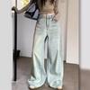 Retro High-waisted Washed Old Jeans Women's Summer Loose and Thin Floor Pants Straight-leg Pants Wide-leg Pants Long Pants