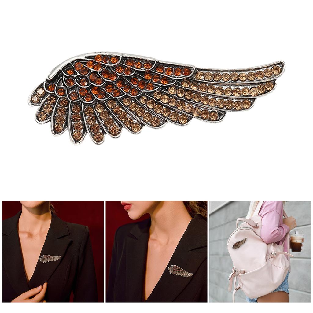 Vintage Angel Wing Brooch With Sparkling Crystals Elegant Feather Lapel Pin Accessories For Party Office Accessories