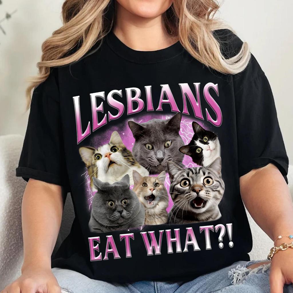 Lesbians Eat What? Shirt Mewing Not Meowing Tshirts Memes Graphic Short Sleeve Shirt Unisex Men Women Summer