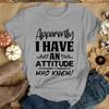 Apparently I Have An Attitude Who Knew Letter Print T Shirt Women'S Casual Top Harajuku Fashion Shirt Short Sleeve