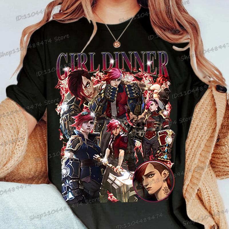 Vi Arcane League of Legends Classic Tops Men Women Anime Apparel Cotton T-shirt Vi Arcane Girl Dinner Street Style Shirt Clothes